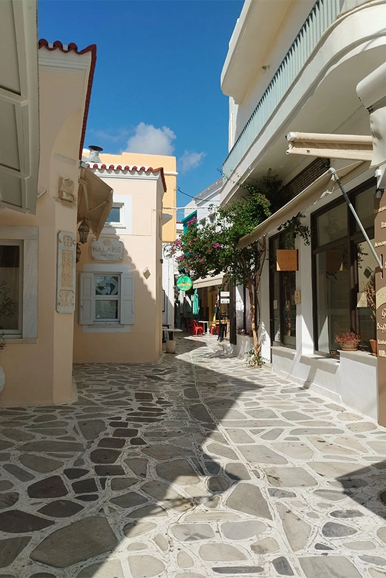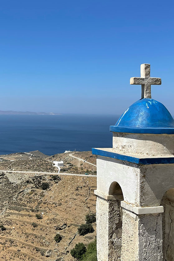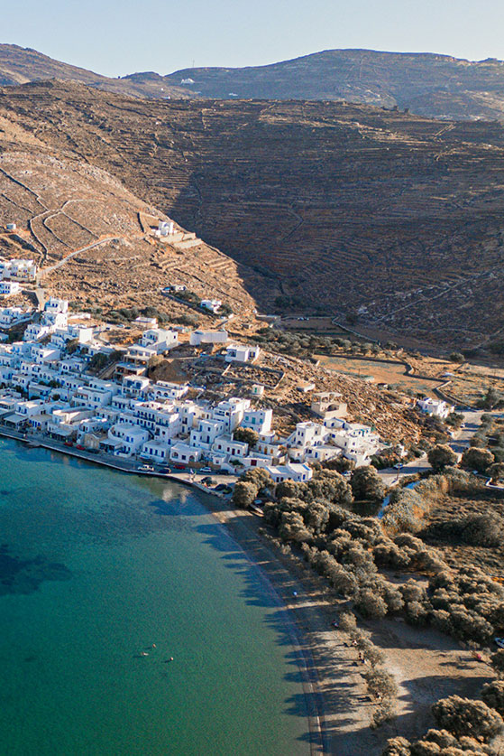 Εκτός από τον απίστευτο αριθμό των εκκλησιών, το νησί μπορεί να υπερηφανεύεται για ένα συγκρότημα περίπου 40 χωριών που έχουν διατηρήσει την αυθεντική γοητεία και ομορφιά τους και φημίζονται επίσης για τα αμέτρητα μπλε σπίτια τους. Φτιαγμένο και περίπλοκα σχεδιασμένο, αυτό είναι ένα άλλο απομεινάρι του ενετικού παρελθόντος του νησιού.